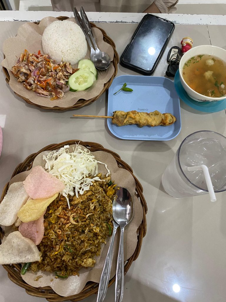 • Paket nasi + lauk lengkap: Rp 12.000 – Rp 17.000